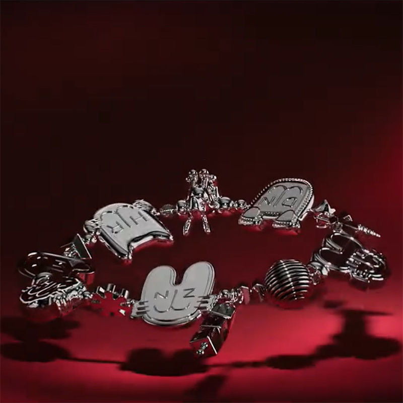 NJZ (NewJeans) Bracelet, perfect for use or gifting another bunnie!❤️ In metal alloy, with several pendants. Average size 20 to 22 cm, adjustable.