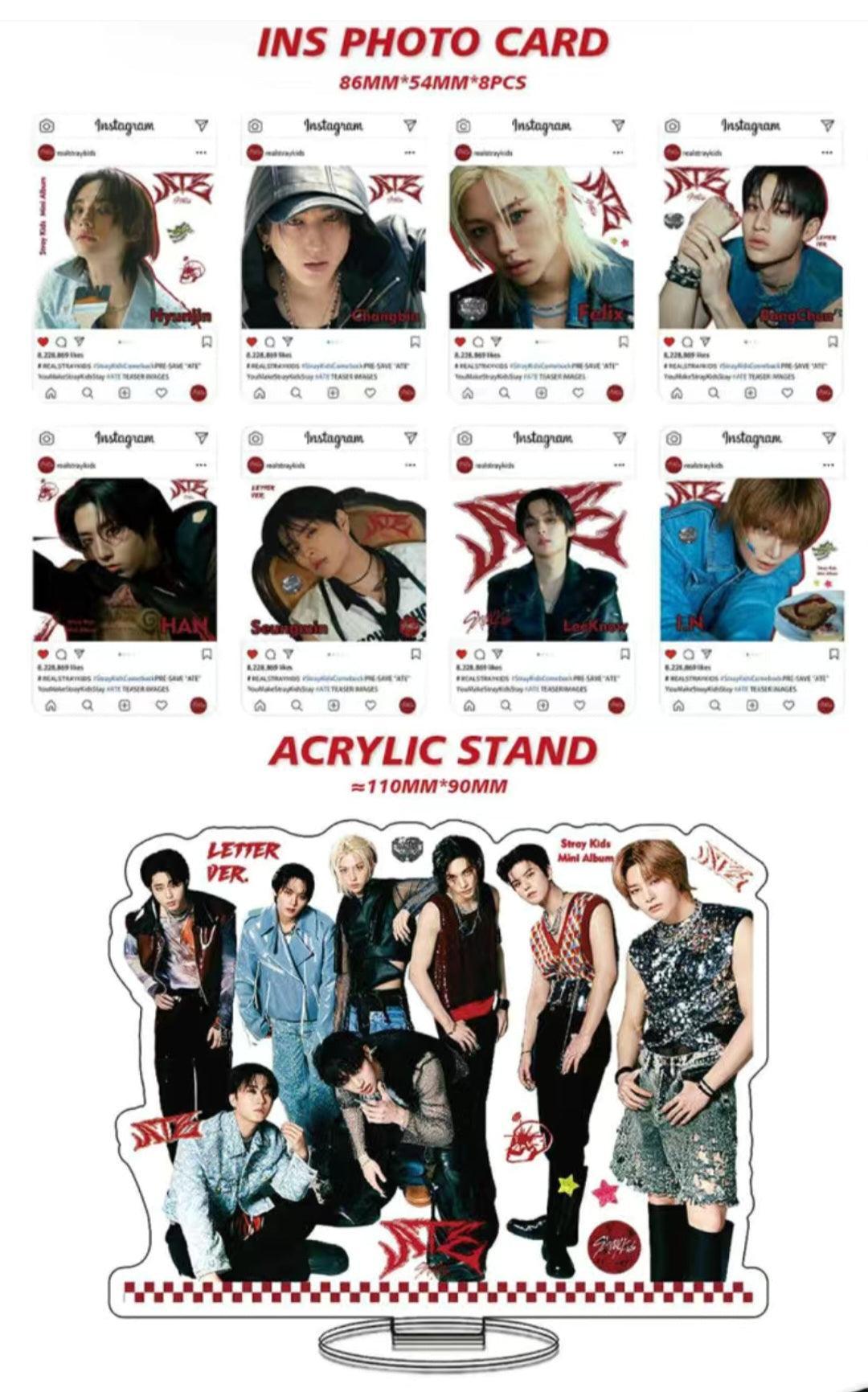 - 1 Box with 55 Stray Kids Photocards (standard photocard size);